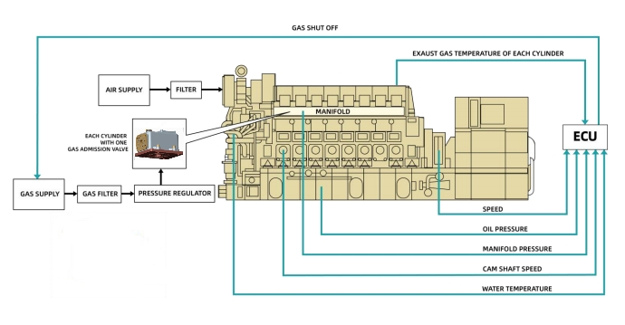 Therefore, transforming diesel engines into gas or dual-fuel engines is an effective choice in the transitional stage. It can significantly reduce operating and production costs and comply with emission standards and environmental protection.