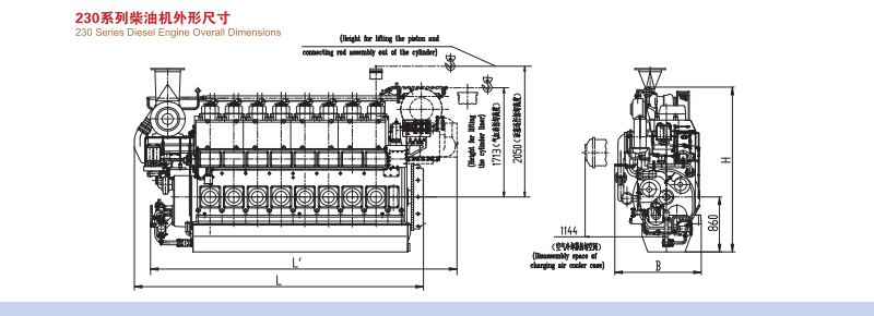 The engine with 6 or 8 cylinders and with the output of 660 to 1324kW. 6230 is a product developed by our company in cooperation with the Shanghai Marine Diesel Engine Institute on the base of the successful experience in diesel engine design and use, on the principle of assimilation of advanced technologies and improvement upon of them, and by adoption of the advanced structure of the other engines, with many features such as a simple outline, reasonable construction, reliable performance, easy operation and maintenance.