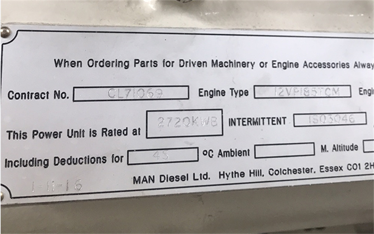 MAN 12VP185TCM diesel engines 4 in stock for sale, original brand new, can be used in shipbuilding, the specific parameters are detailed as follows.
