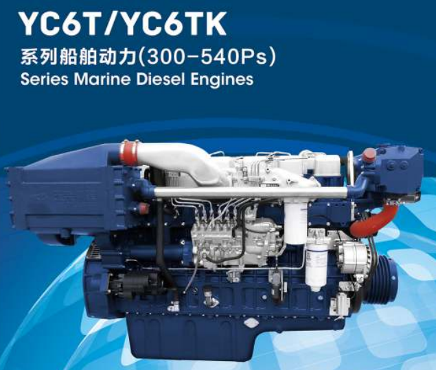 YC6TD Integrated the advanced technology of Germany, America and Japan.YC6T is the new generation engine especially developed to meet the requirements of vessels. It is ideal for powering various kinds of vessels. It is used as the ideal power for 355-400kW auxiliary genset.