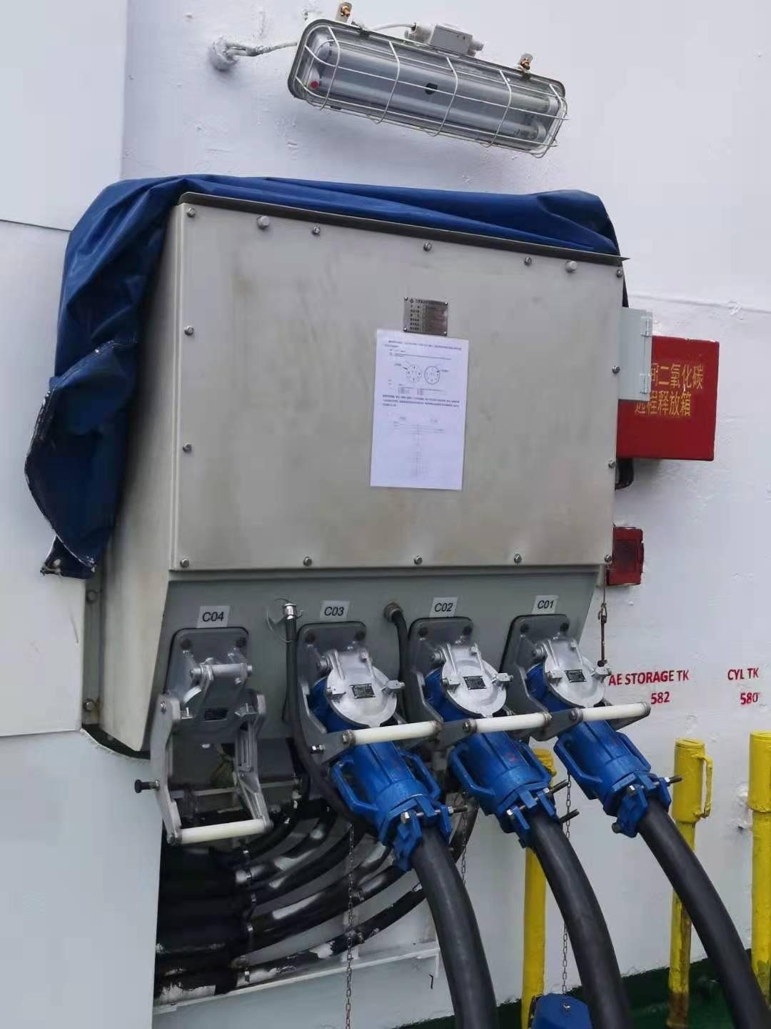 BFMP series Shore Connection Box is used to connect the shore power to the ship when ship docked. Generally it has the protection for under-voltage, overload and short-circuit, as well as the indication for phase sequence. Due to the client's requirement, it can also equipped with additional functions such as automatic change-over when reverse phase connection,measuring of voltage and current, guage of Kwh etc.