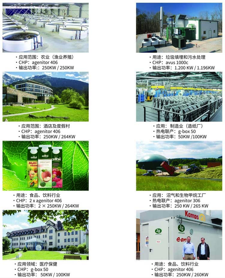 應用領域:農(nóng)業(yè)、機場、啤酒廠、食品工業(yè)、溫室、雜貨店、醫(yī)院和護理設施、垃圾填埋場、工業(yè)與制造業(yè)、制藥設施、酒店及度假村、大學、廢水處理廠、微電網(wǎng)熱電聯(lián)產(chǎn)、可再生天然氣設施等。