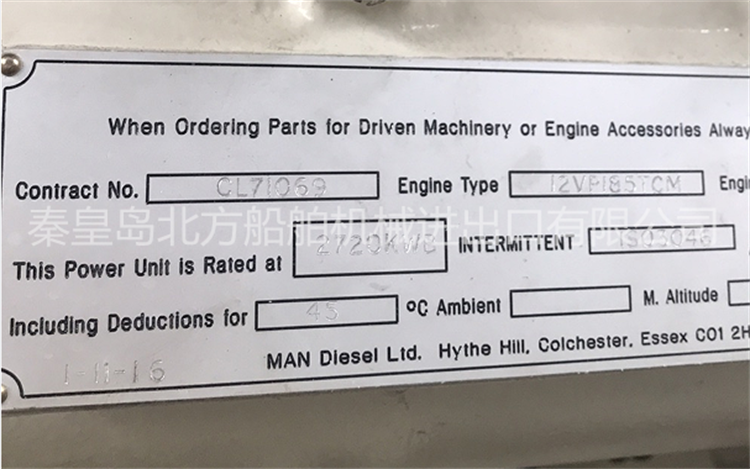 柴油機(jī)型號 MAN 12VP185TCM