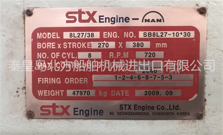 STX-MAN 8L27/38柴油發(fā)電機(jī)組4臺(tái)待售,原裝全新機(jī),可用于陸用電站,具體參數(shù)詳情如下: