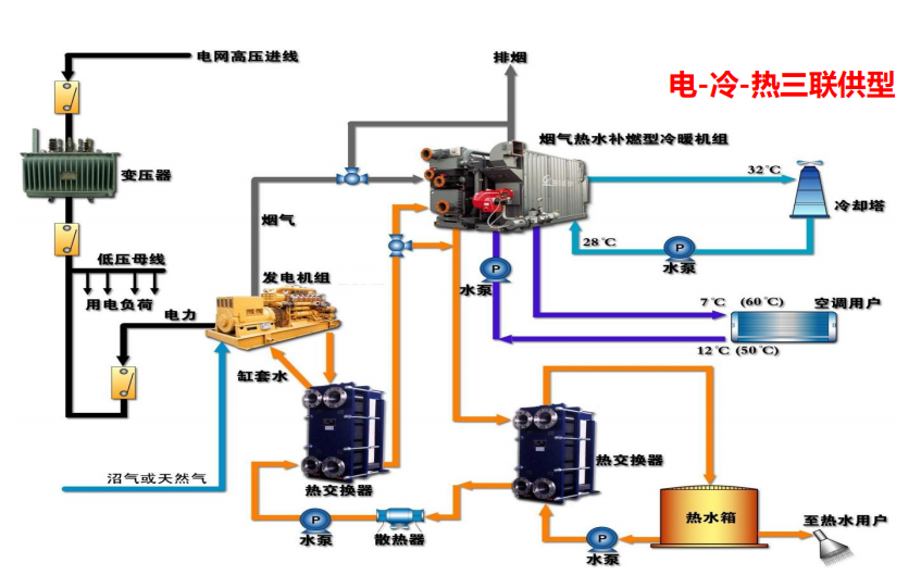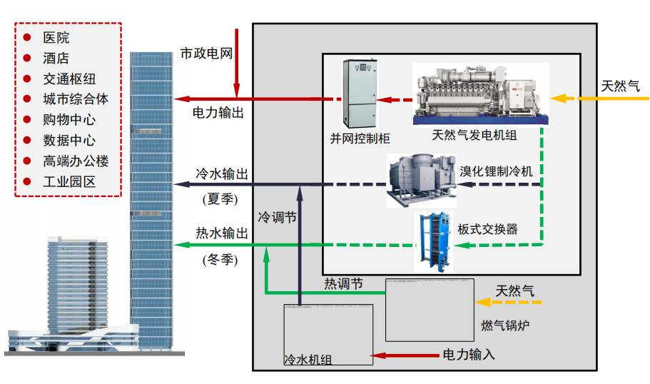 采用清潔的天然氣為燃料,極大地減少了有害物的排放。與傳統(tǒng)集中供能系統(tǒng)相比,可減排33%的二氧化碳,節(jié)能約23%。此外,就近供電減少了大容量遠距離高電壓輸電線的建設(shè),降低了電磁污染和土地占用。