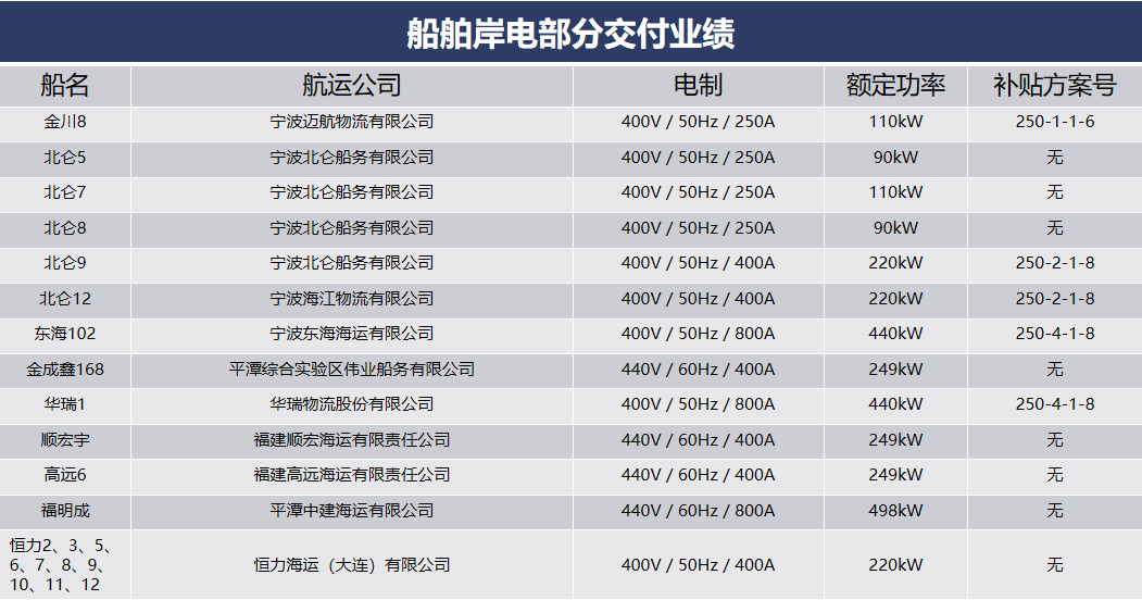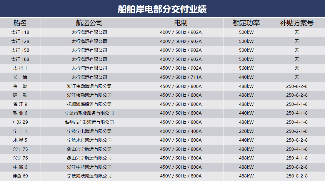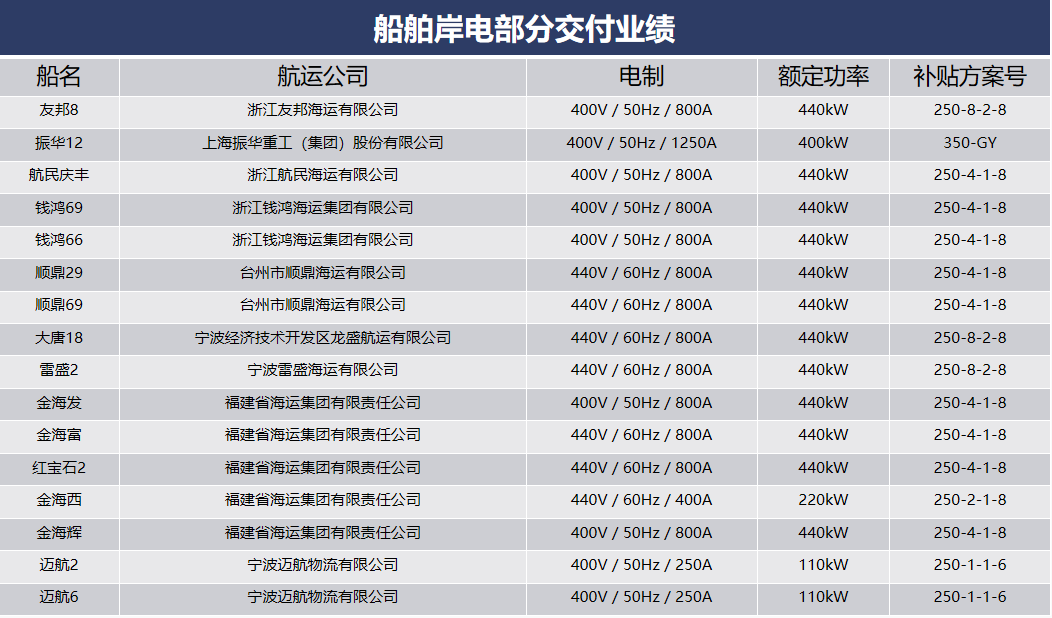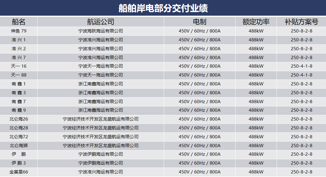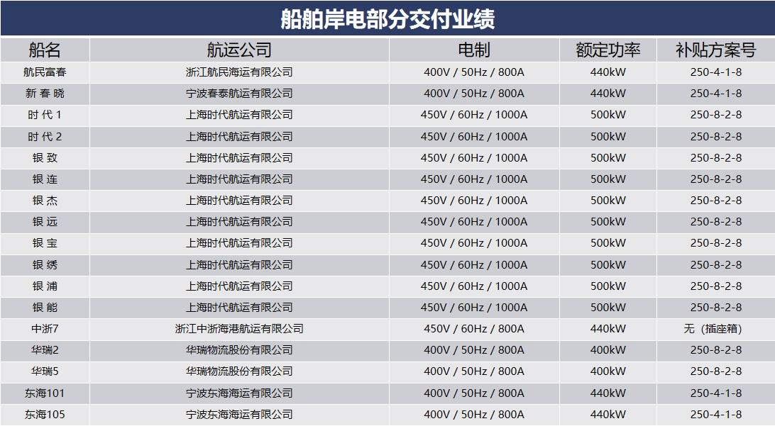 船舶岸電部分交付業(yè)績(jī)
